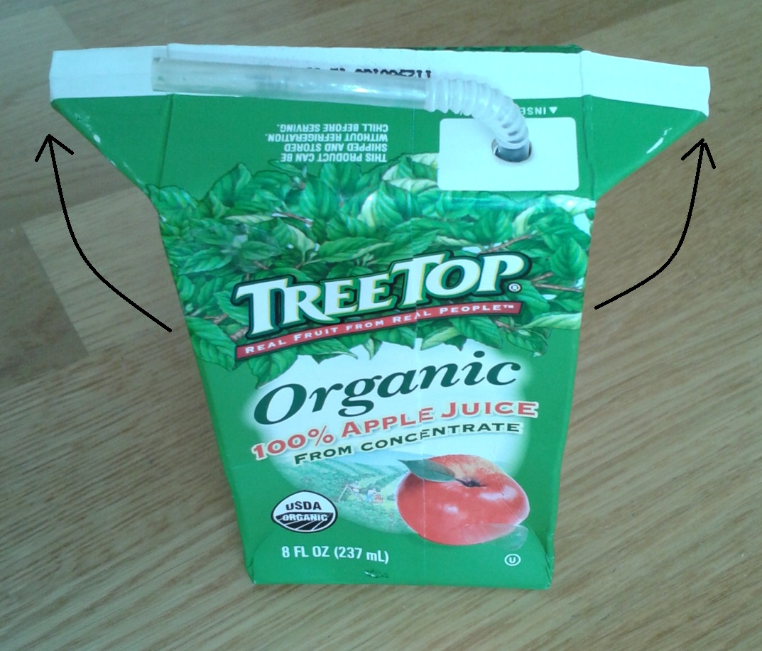 …and have your preschooler hold his drink by the flaps. Voila! No more juice box geysers! ENJOY!