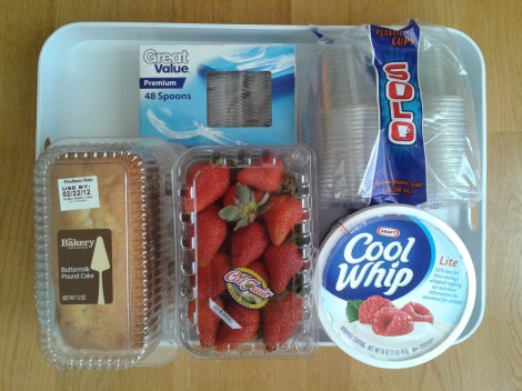 Here’s what you need (plus a little sugar and water): pound cake, strawberries, and cool whip!