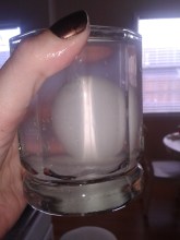 Thankfully, there’s a fast & way to check if your eggs are still fresh. Fill up a cup or bowl of water, add a little salt (I’m not even sure the salt’s necessary, but it sure does make the whole process seem more official), and put in the egg.