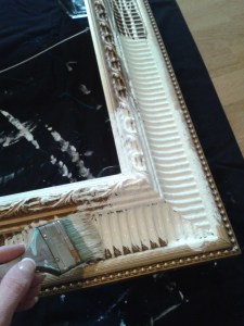 Next, I slapped on a coat of creamy white with a stiff bristle brush (to get in all the nooks & crannies).