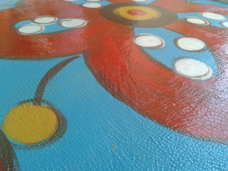 Then I added some detailing (basically just very loosely outlining everything with the brown) and (after it dried) a coat of crackle finish.