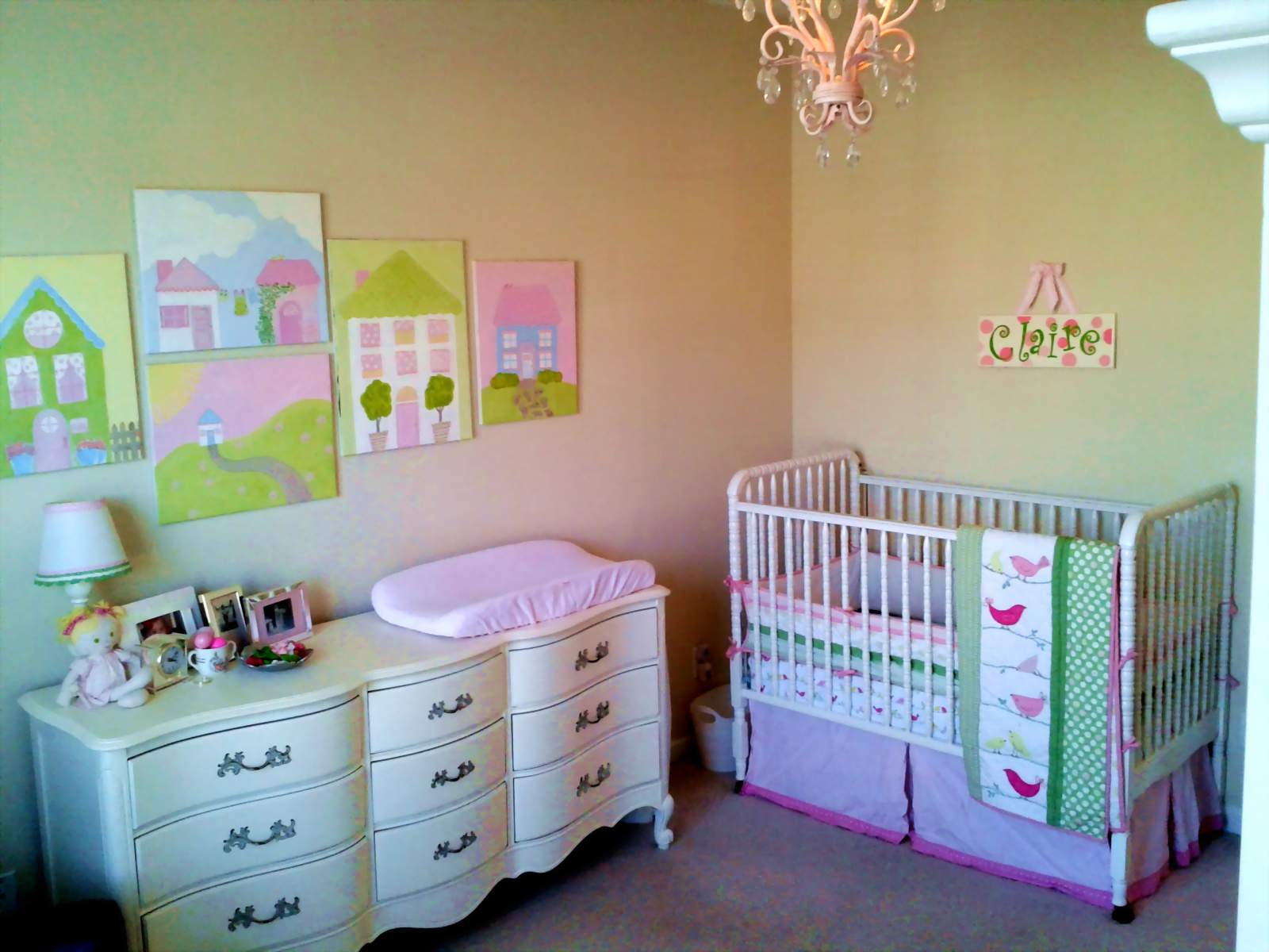 I’ve added a few thumbnails close to the end of the post you can click on to enlarge. The first one is the chandelier. It came from a local baby boutique here in Asheville, North Carolina, called Posh Petite. I’m sure the owner, Melody, would ship anywhere!