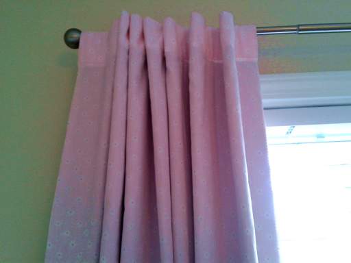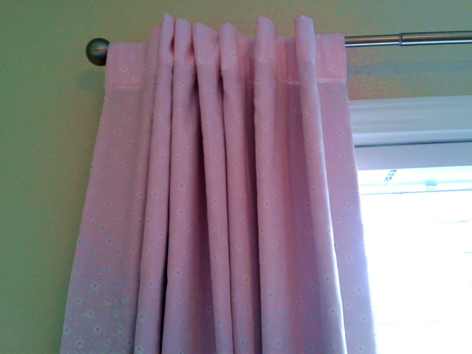 Total investment for 108″ [black-out lined] curtains, rod, & finials: about $14