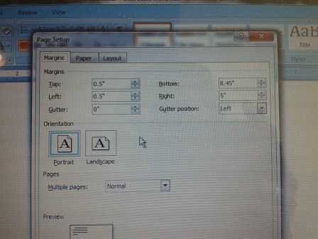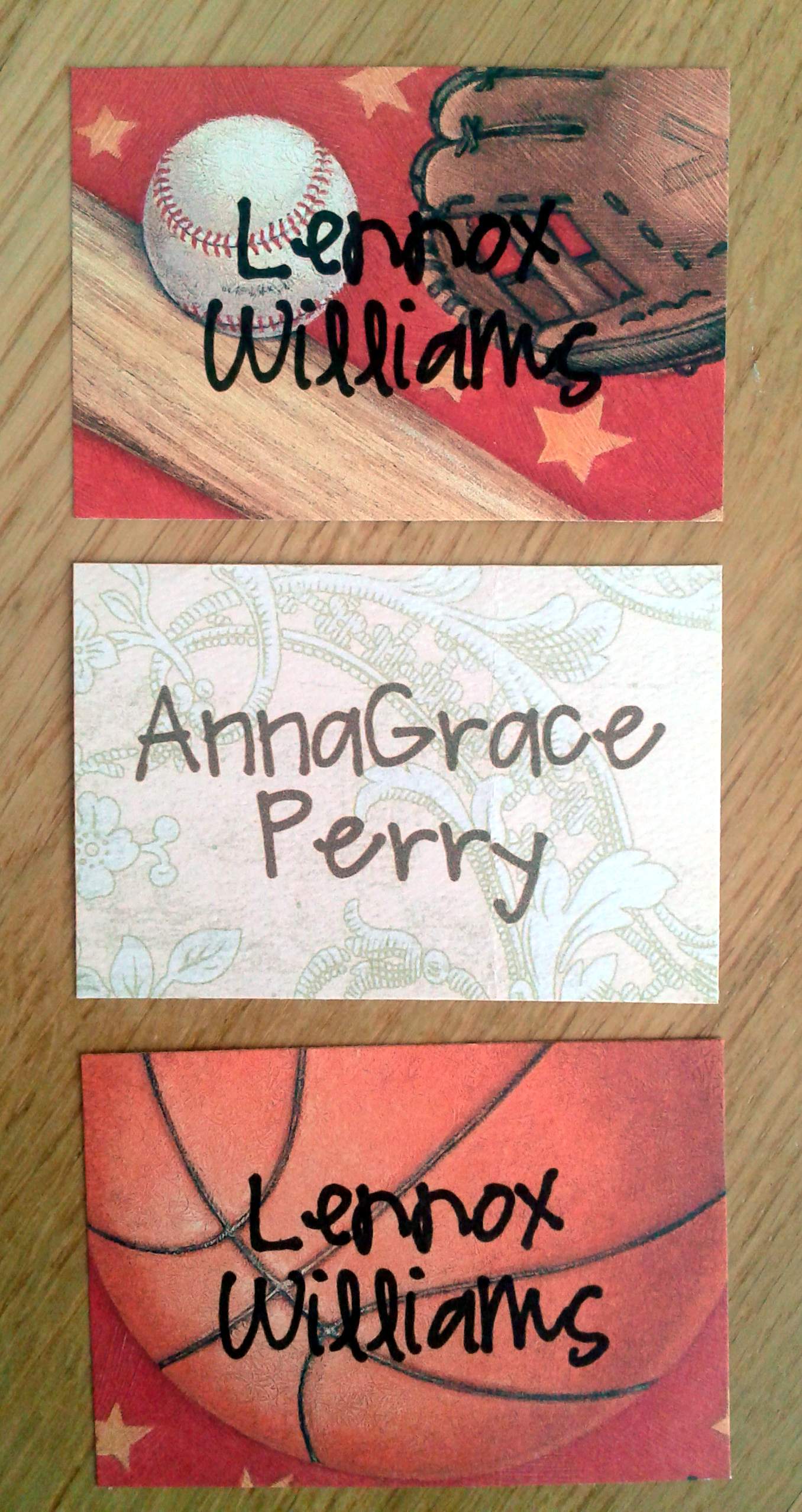 Simply open a standard 8.5″ x 11″ word document and set your margins to 0.5″ top, 8.45″ bottom, 0.5″ left, 5″ right (so you will have space in the top, left-hand side of the page). Then type your child’s name in whatever font and whatever size (to fit within your margins) you want.