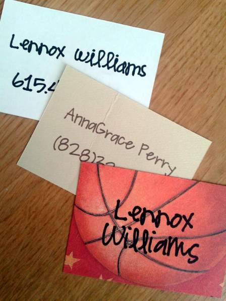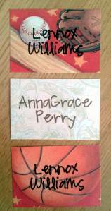 If you also want to print on the back of the bag tag, set your margins to 0.5″ top, 8.45″ bottom, 5″ left, 0.5″ right (so it will be on the top, right-hand side of the page), then feed your already printed (but NOT yet trimmed) piece of scrapbook paper through to print on the back. I like to put the name on the front and cell numbers or pertinent allergy info on the back. Then trim the paper to about 2.5″ x 3.5″ (again, it doesn’t have to be exact, but it needs to fit in the bag tag laminating pouch with about a quarter-inch border for the adhesive to have room to adhere all the way around).