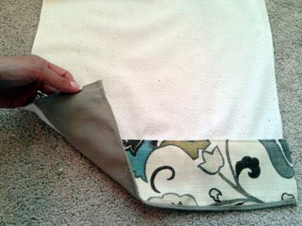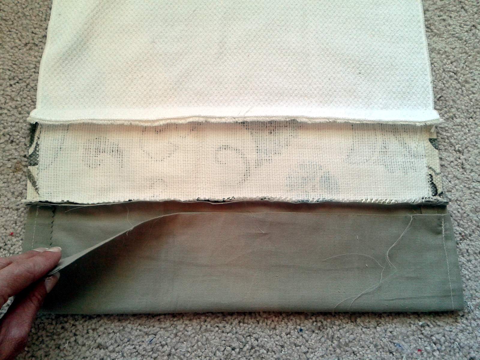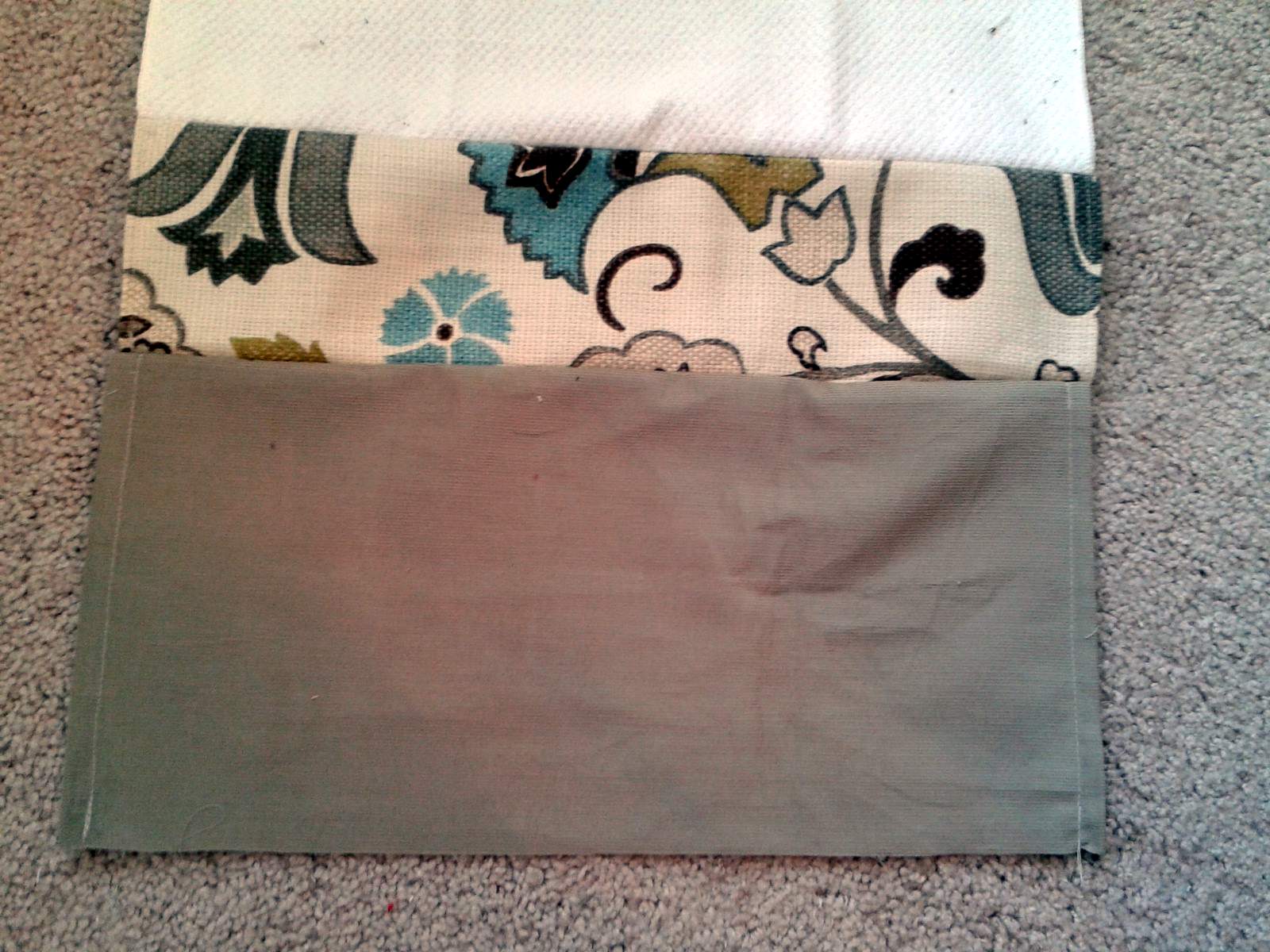 Originally, I was going to just fold the accent fabric back, but I decided I wanted more of it to show from the front, so I added another piece of [neutral] coordinating fabric. Seam up the left and right sides just like with the accent fabric.