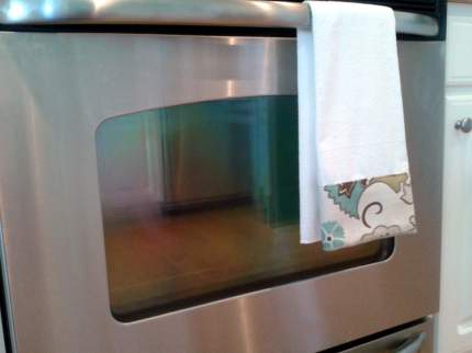Then hang it on your oven… Oof! After cleaning it a bit! Fingerprint mayhem!!