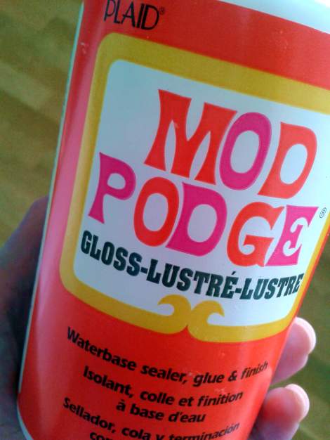 …The only problem was it is pretty flat paint, so after the side table was painted, I rolled on a coat of Mod Podge (oh yes I did).