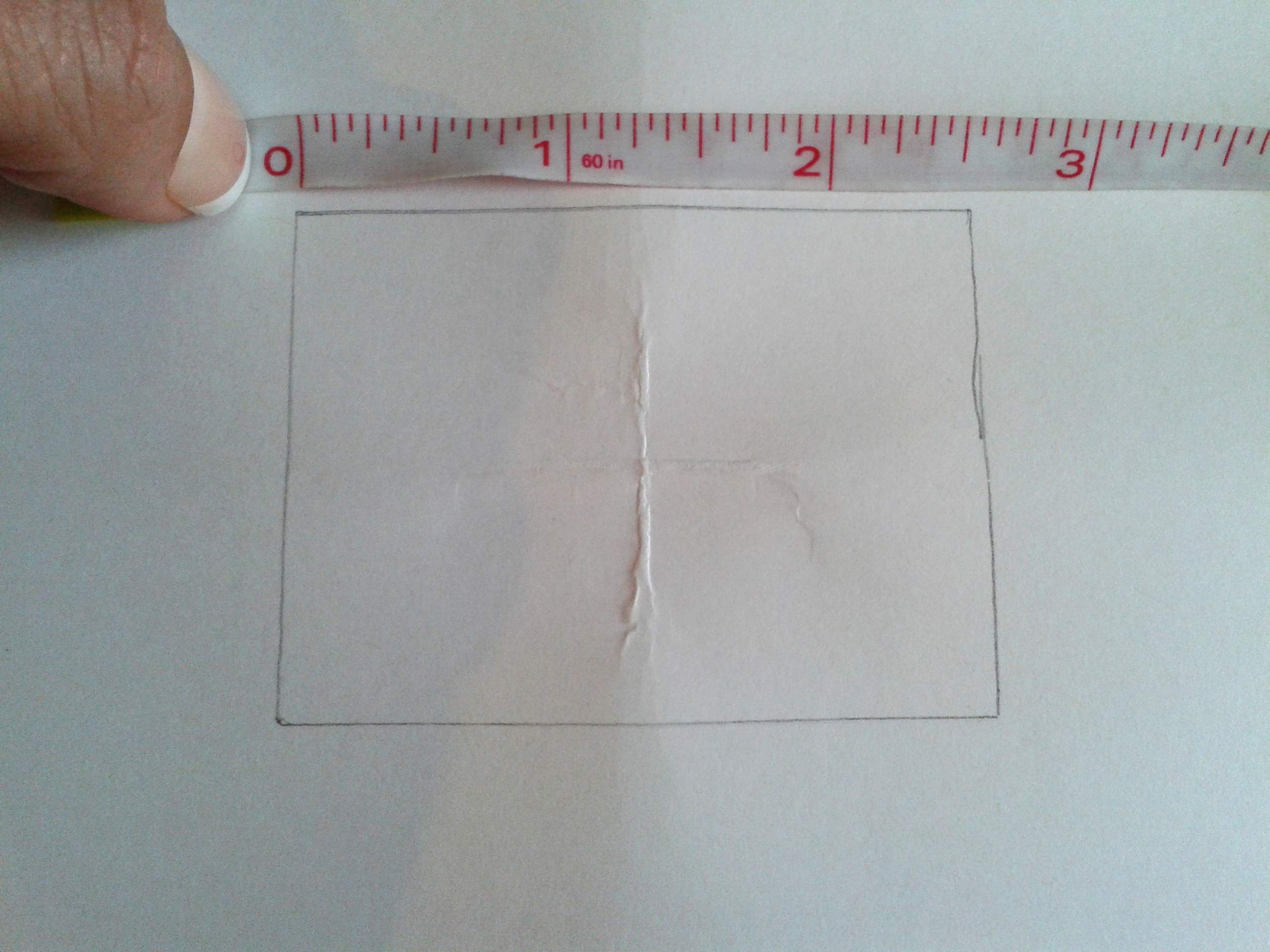 I folded the paper in half both ways, just creasing the center, to find my center point from which to measure. If you are going to paint, say, an 8″ by 10″ canvas, you will want an opening that is in scale with that (2″ x 2.5″ here in my case). I used a 25% scale, but can make the scale smaller or bigger to fit well inside your homemade “viewfinder.” If you are going to take a 3 x 5 photo, frame it out with a 1.5″ x 2.5″ window, etc.