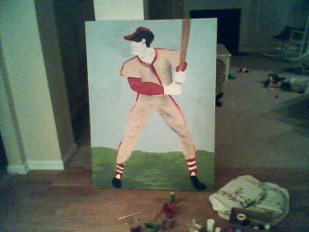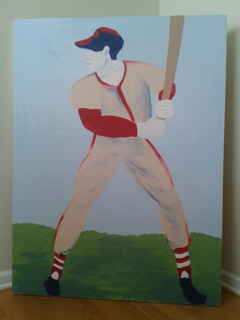 In most paintings, you paint back to front, so fill in what will be in the background and then move forward into what will be in the foreground… Um, yeah, I broke my own rule on this one… Since it was a totally random impulse to paint this, I wanted to see if I could actually rough in the baseball player to my satisfaction before proceeding…