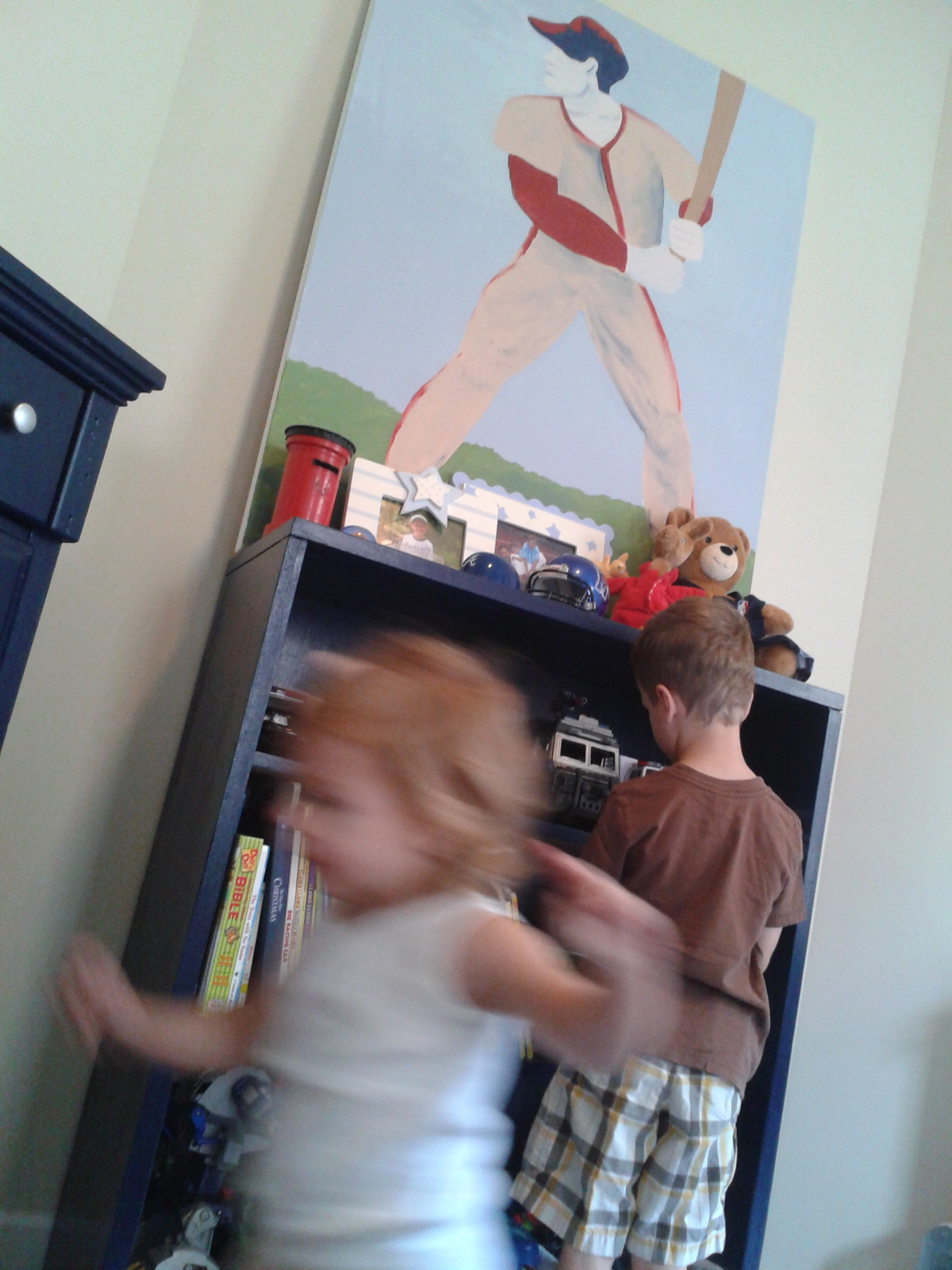 The painting went into Li’l Bro’s room where it stayed leaning against the wall right for some time…