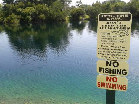 …well, and trying to keep my little water-loving girl from jumping into the pond, when I saw this sign: