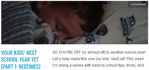 LINK your kids’ best school year yet {part 1 bedtimes} Published August 21, 2012 at 477 × 226 in Your Kids’ BEST School Year Yet {Part 2: Mornings} ← Previous