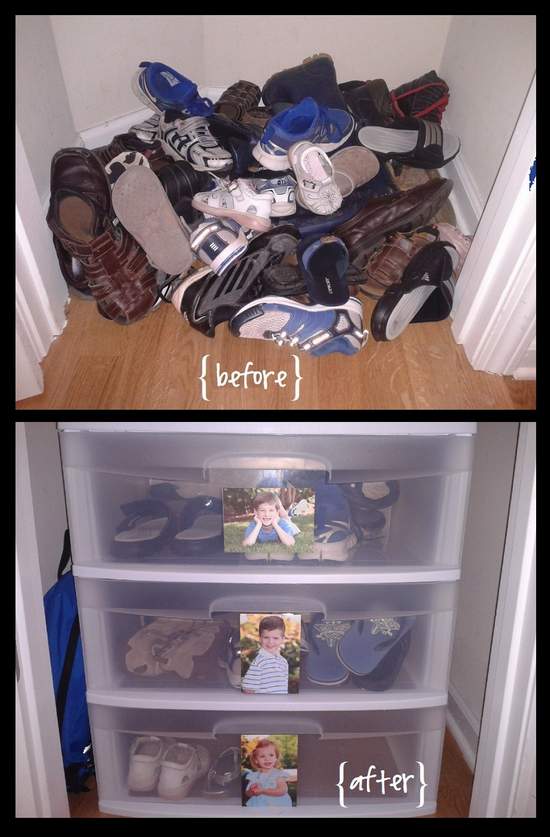 11 mudroom in a closet before & after Published June 11, 2013 at 550 × 837 in How To Make A Fully Functional Kids’ Mudroom {in a teensy closet} ← Previous