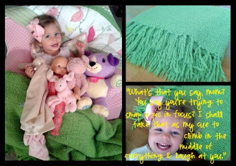 My sister-in-law had gotten me this fantastic Maclaren stroller, and this $1.99 bag is a perfect match to the stroller’s stripes with its periwinkle flowers, bitter chocolate background, and black webbing straps. Huzzah! A quick run through the wash, and it’s ready to roll!