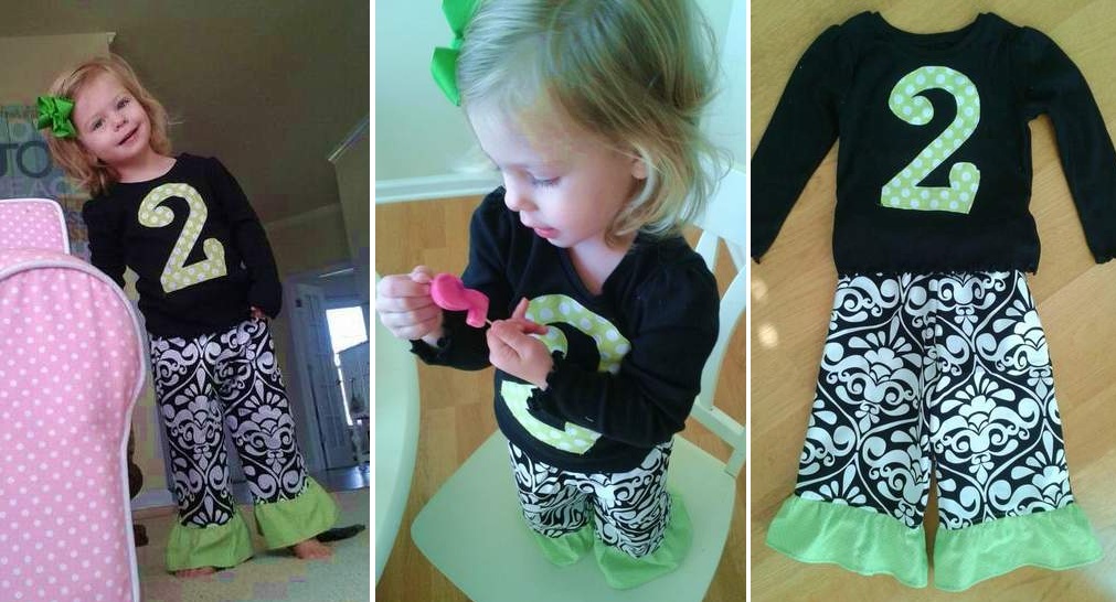 And I had literally just one scrap piece of this polka dot fabric, but that was plenty to freehand cut this number 2 for Sissy’s birthday shirt. The pants were also pieced from scraps.