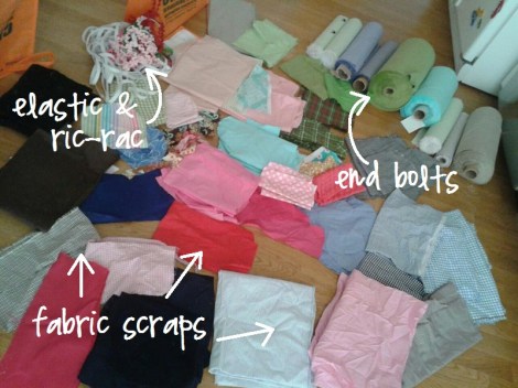 They sell kitchen-size trash bags of fabric scraps out of huge bins for $3/bag, and some of the “scraps” are ridiculously big, so it is quite a deal. They also sell all kinds of fabric by the yard, trims, and end bolts.