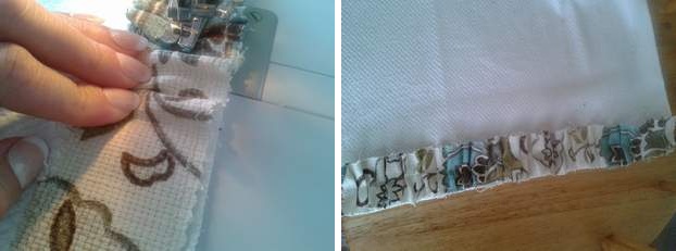 So I pulled out some of our home decor fabric and cut a couple of strips, then set to work making another hand towel for the kitchen.