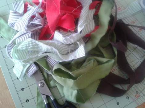 [Hmm… it’s so fast and therapeutic that I went a little strip-rip crazy, haha.] I grabbed a little red microcord & green stripe seersucker for Christmas colors, too.