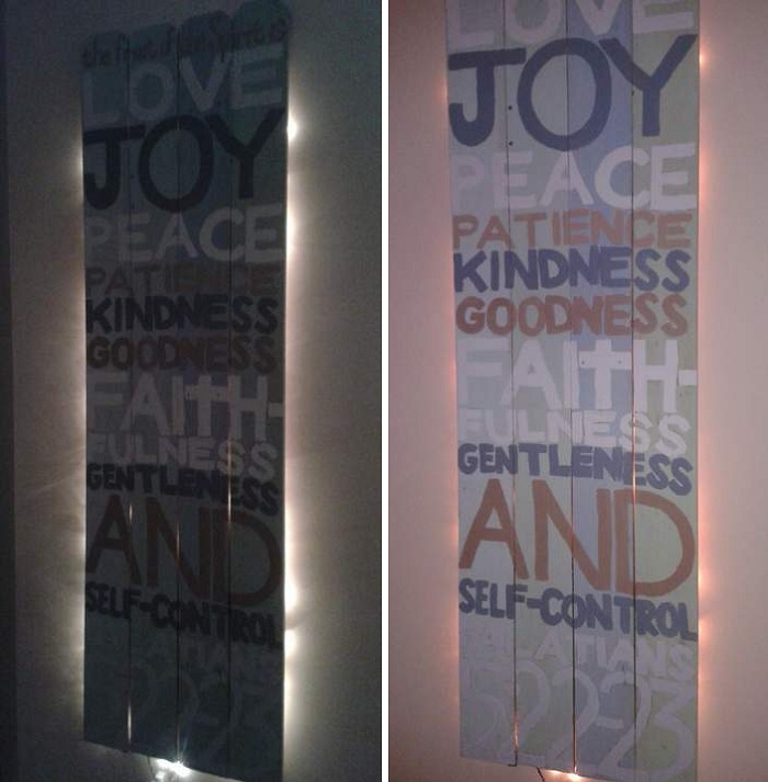 backlit fence plank art night Published December 4, 2012 at 700 × 713 in Back-Lighting The {fruits of the Spirit} Fence Plank Art ← Previous Next →