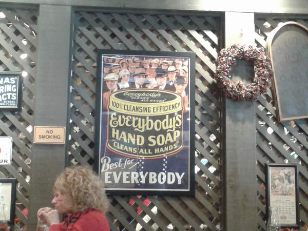 It was so fun having the boys home from school over Christmas break, and hubs even took a few days off, so we got to spend lots of family time together. One morning we loaded the crew into the swagger wagon and headed out for breakfast at Cracker Barrel. Now if you’ve ever been to Cracker Barrel, you know that it is chock full of tchotchkes. There is old timey memorabilia on every foot of wall space.