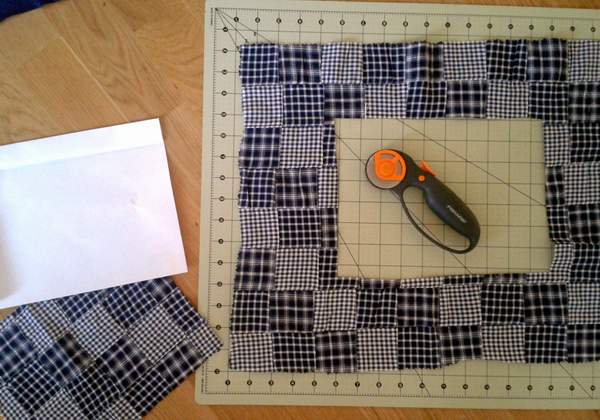 Next, cut out the window from the center of the cover fabric. [This is super easy if you happen to have a rotary cutter and self-healing mat.]