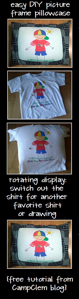 Then tuck the t-shirt covered pillow into your finished picture frame pillowcase.