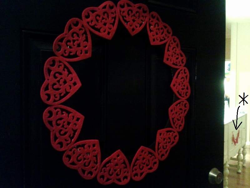 Then I realized I had actually only bought twenty-one hearts, so I truncated the swag* and used those pieces to fill in the gaps in this wreath. But more on how I made the wreath another day, perhaps.