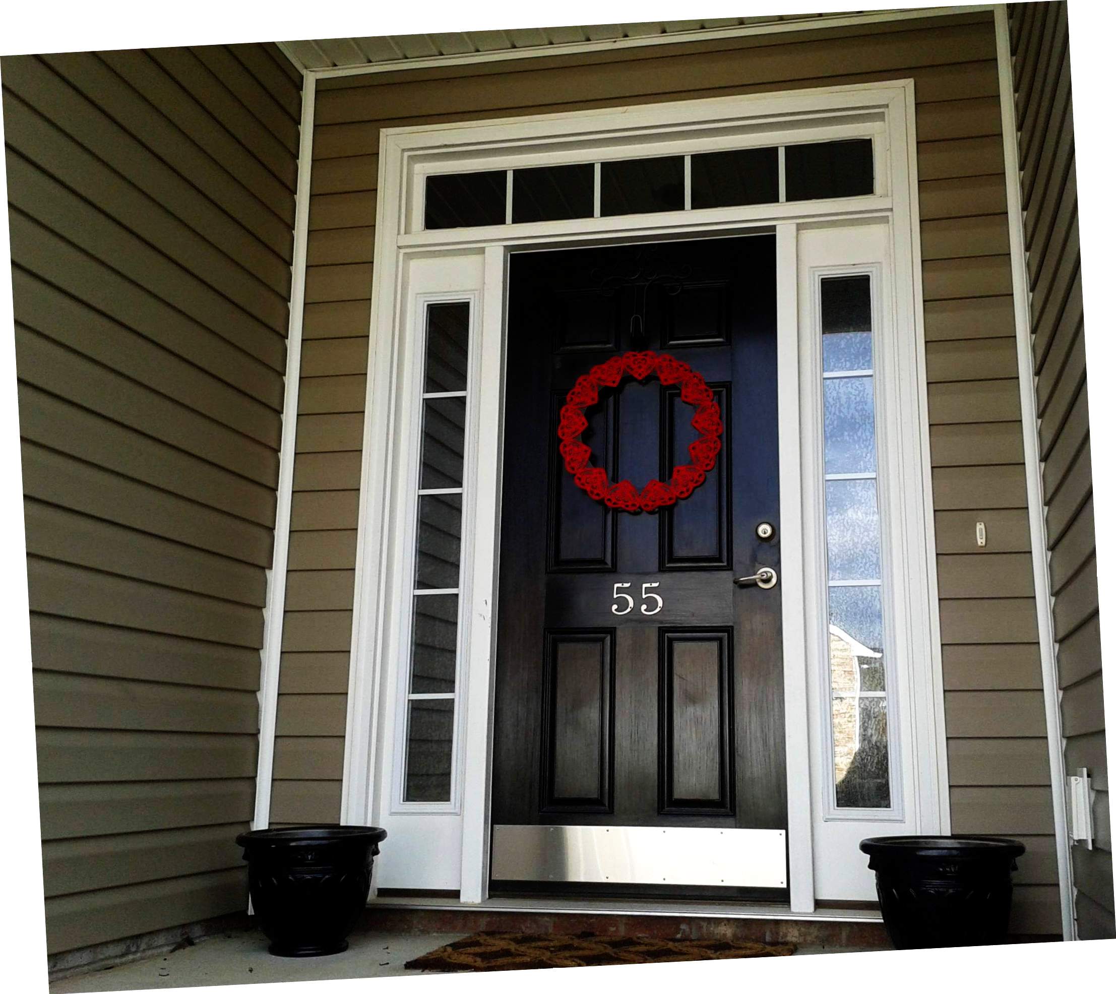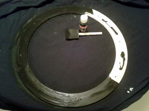 I wanted the hearts to look like they were sort of floating, without a form, so I painted a wooden wreath form the color of our front door using black craft paint (then a coat of gloss mod podge, since our front door has a gloss finish).