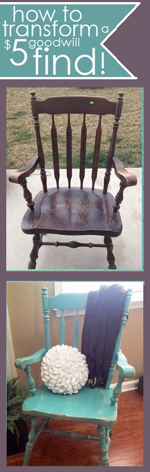 how to transform an ugly brown $5 goodwill chair to a perfectly weathered aqua piece Published May 1, 2013 at 294 × 922 in Take A Seat In Your Happy Place {my brilliant friends week} ← Previous