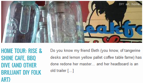 LINK Home Tour Rise & Shine Cafe, BBQ Dive {and other brilliant DIY folk art} Published May 20, 2013 at 477 × 277 in Tangerine Study Nook Desks & Yellow Pallet Coffee Table {my brilliant friends week} ← Previous
