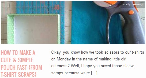 LINK How To Make A Cute & Simple Pouch FAST {from t-shirt scraps} Published July 9, 2013 at 476 × 253 in T-Shirt To Cinch-Waist Dress {simple sew DIY} ← Previous