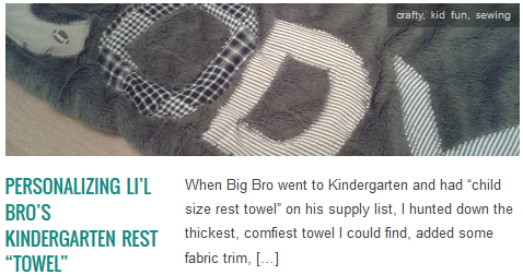 LINK Personalizing Li’l Bro’s Kindergarten Rest “Towel” Published October 8, 2013 at 478 × 252 in Scrap-Happy Pink & Green DIY Blanket Personalization ← Previous