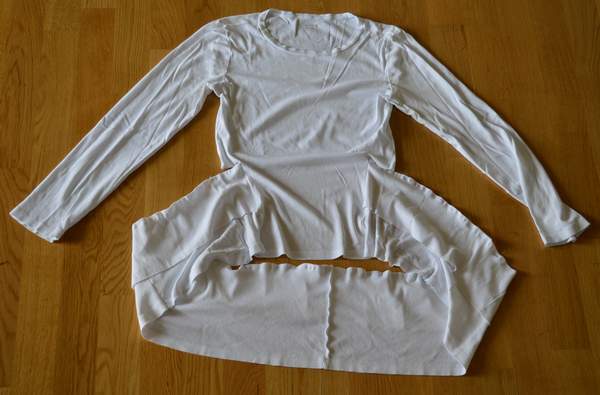 white t-shirt ruffle refashion 16 Published March 5, 2014 at 600 × 395 in My Two Old Shirts Combine For A Ruffled Makeover ← Previous Next →