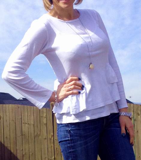 white t-shirt ruffle refashion 20 Published March 5, 2014 at 470 × 532 in My Two Old Shirts Combine For A Ruffled Makeover ← Previous Next →