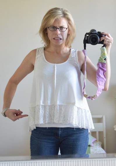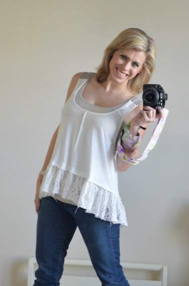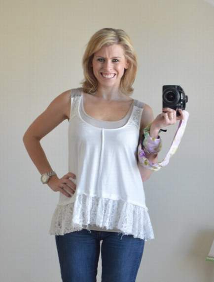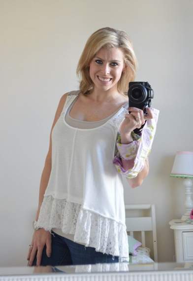 I got a cute ruffled tank on super sale at one of my faves, Altar’d State, recently. I think it was about $10, maybe $15. But upon further reflection, I decided that the wide ruffle just hit at the most unflattering spot possible: right at my waist.