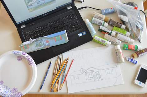 You know how much I love to do a house painting for someone I know it will make happy!! [Remember the little storybook cottage? And the boat portrait?] And since apparently I was in house-painting mode, this became a pretty opportunely-timed gift idea!