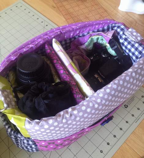 With the bag complete, I made four padded dividers with the leftover padding and more scraps.